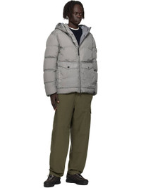 Down-filled and coated crinkled nylon taffeta jacket. · RDS-certified down · Water-resistant, wind-resistant garment-dyed · Bungee-style drawstring at hood and hem · Two-way zip and press-stud closure · Flap and welt pockets at waist · Detachable felted logo patch st sleeve · Elasticized cuffs · Patch pocket at interior · Full plain-woven lining Part of the Ghost collection. Supplier color: Cement Fill 1: 80% duck down, 20% duck feather. Fill 2: 100% polyester. Body 1: 100% polyamide. Body 2: 100% polyurethane resin. Lining: 100% polyamide. Made in Indonesia 252828M178030