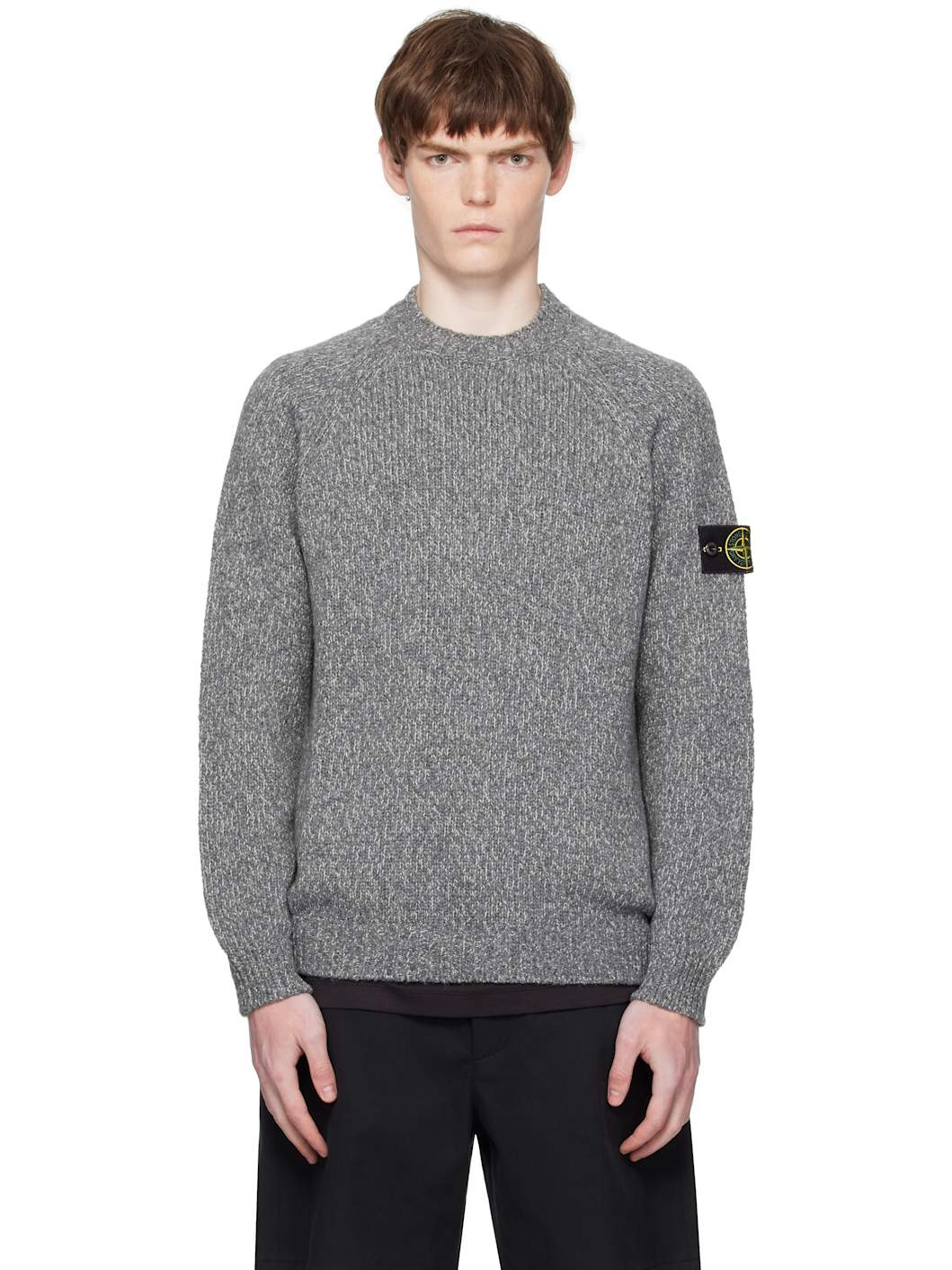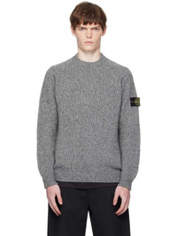 Knit virgin wool-blend sweater. · Rib-knit crewneck, hem, and cuffs · Detachable felted logo patch at sleeve Supplier color: Cement melange 48% virgin wool, 43% polyamide, 9% viscose. Made in Croatia 252828M201020