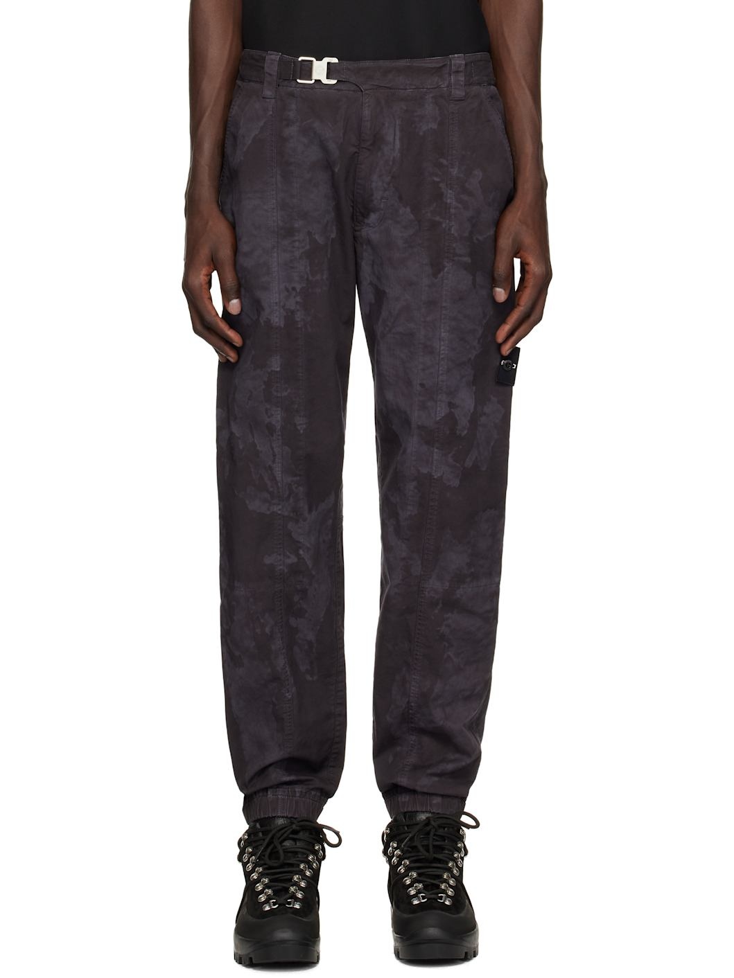 Stretch organic cotton broken twill cargo pants. Fading throughout. · Garment-dyed · Belt loops · Offset hook fastening at waistband · Three-pocket styling · Zip-fly · Elasticized cuffs · Detachable felted logo patch at outseam · Velcro tabs at back waistband Supplier color: Lead Grey Supplier code: K1S153100 97% organic cotton, 3% elastane. Made in Italy 251828M191011