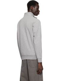 Organic cotton French terry sweater. · Stand collar · Zip closure · Patch pockets · Rib-knit hem and cuffs · Detachable felted logo patch at sleeve Supplier color: Melange grey Supplier code: 6100643