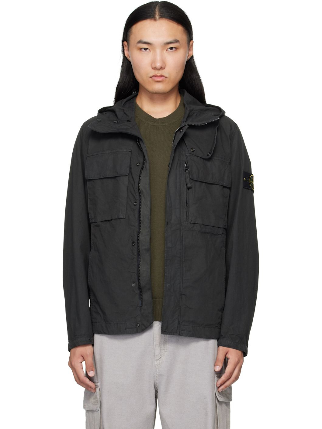 Garment-dyed organic cotton canvas jacket. · Water-resistant anti-drop coating · Press-stud throat guard at stand collar · Concealed zip closure with press-stud placket · Zip pocket and flap pockets at chest · Welt pockets at waist · Eyelets at armscyes · Detachable logo patch at sleeve · Adjustable press-stud cuffs · Unlined Supplier color: Lead Grey 100% cotton. Made in Tunisia 252828M178003