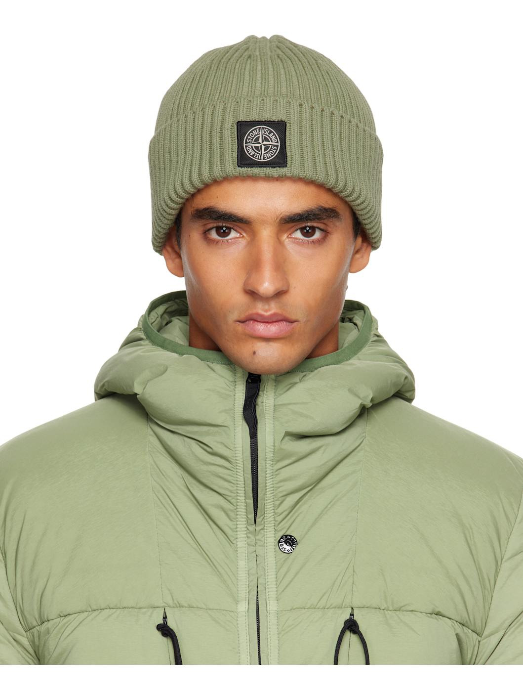 9-gauge rib-knit virgin wool beanie. · RWS-certified wool · Logo patch at face · Rolled brim Supplier color: Sage green 100% virgin wool. Made in Tunisia 252828M138002