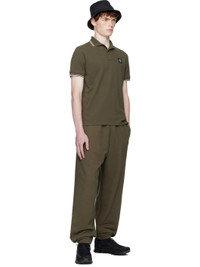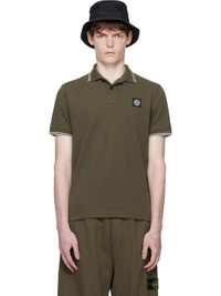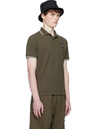 Stretch organic cotton pique polo. · Striped rib-knit spread collar and cuffs · Two-button placket · Logo patch at chest · Tennis-tail hem Supplier color: Military green Body: 95% organic cotton, 5% elastane. Trim 1: 97% cotton, 3% polyester. Trim 2: 96% cotton, 4% polyester. Made in Moldova 252828M212009