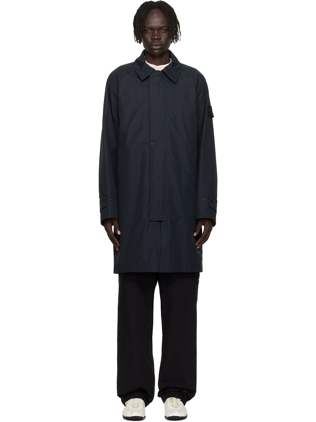 Organic cotton canvas coat. · Press-stud fastening at spread collar · Two-way zip closure and press-stud placket · Welt pockets at front · Raglan sleeves · Detachable felted logo patch at sleeve · Adjustable press-stud tab at cuffs · Patch pocket at interior · Full brushed jersey lining Part of the Ghost collection. Supplier color: Navy blue 100% organic cotton. Made in Italy 252828M176002