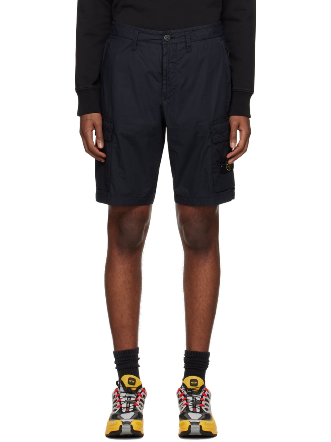 Stretch cotton poplin shorts. · Belt loops · Three-pocket styling · Zip-fly · Flap pocket at outseams · Detachable logo patch at outseam Supplier color: Navy blue Supplier code: 8015L0803 97% cotton, 3% elastane. Made in Viet Nam 241828M193085