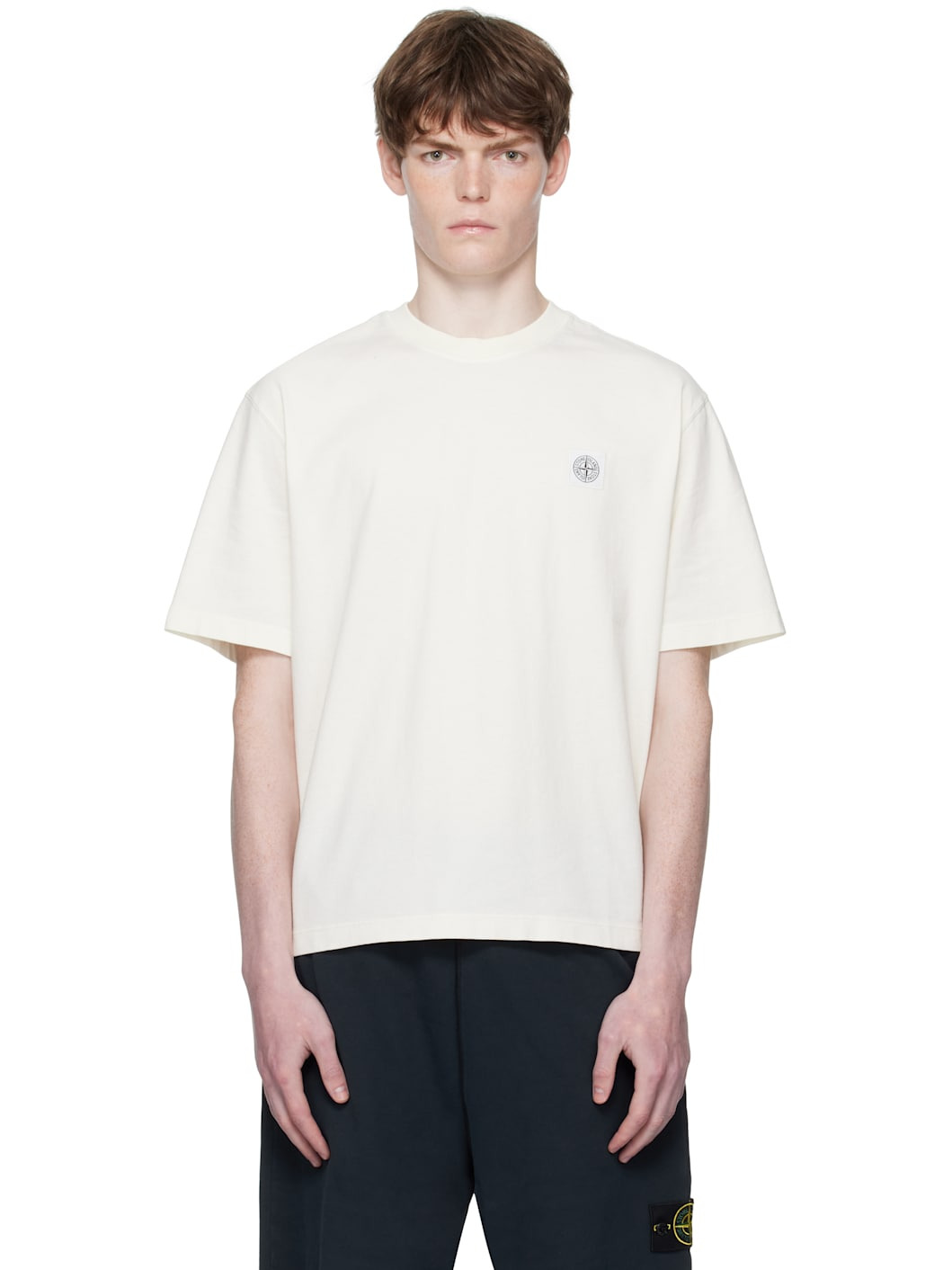 Garment-dyed organic cotton jersey T-shirt. · Rib-knit crewneck · Logo patch at chest Supplier color: Ivory Body: 100% organic cotton. Trim: 94% cotton, 6% elastane. Made in Tunisia 252828M213004