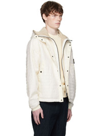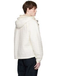 Insulated and quilted nylon taffeta jacket. · Water-resistant, anti-drop coated · Garment-dyed · Detachable rib-knit trim at hood · Stand collar · Zip closure with press-stud placket · Patch pockets at front · Bungee-style drawstring at hem · Raglan sleeves · Detachable felted logo patch at sleeve · Elasticized cuffs · Fully lined Supplier color: Ivory Body: 100% polyamide. Trim: 48% virgin wool, 43% cotton, 8% polyamide. Fill: 100% polyester. Lining: 100% polyamide. Made in Viet Nam 252828M180021