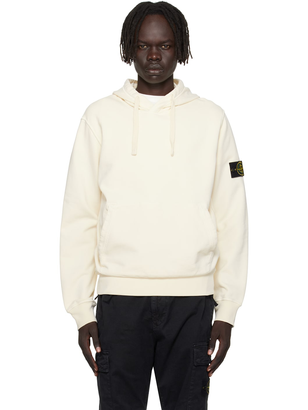 Organic cotton French terry hoodie. · Garment-dyed · Drawstring at hood · Kangaroo pocket · Rib-knit hem and cuffs · Detachable felted logo patch at sleeve Supplier color: Ivory Body: 100% organic cotton. Trim: 98% organic cotton, 2% elastane. Made in Tunisia 252828M202008