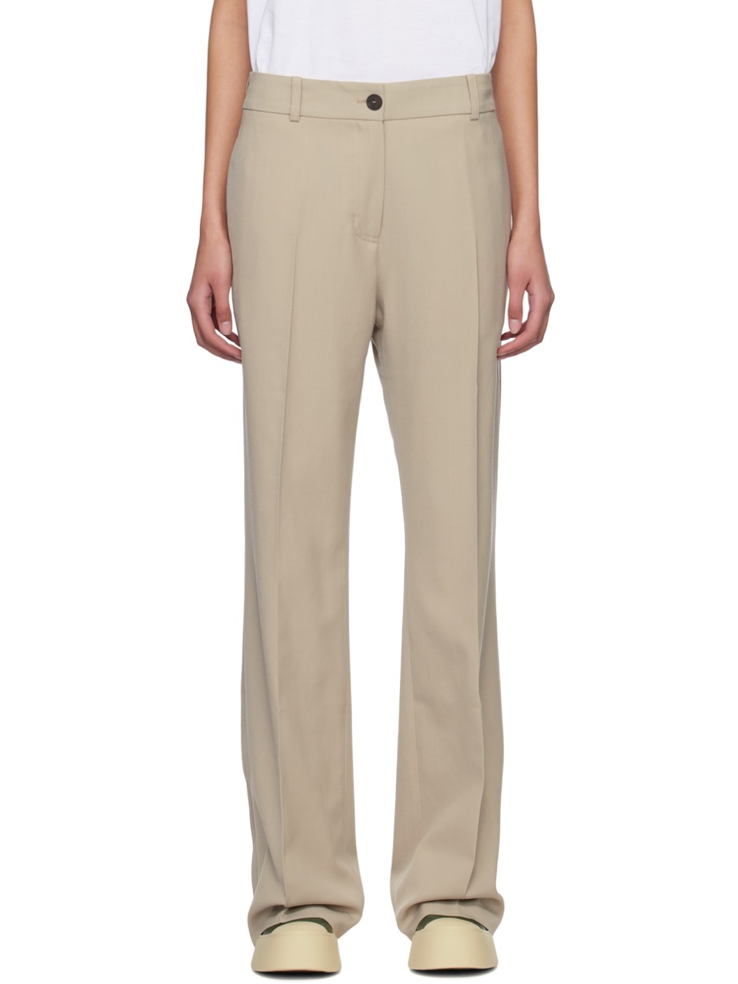 Slim-fit polyester and virgin wool-blend hopsack trousers. · Low-rise · Belt loops · Three-pocket styling · Zip-fly · Creased legs · Concealed zip vent at cuffs Supplier color: Corn 55% polyester, 45% virgin wool. Made in Portugal 231608F087001