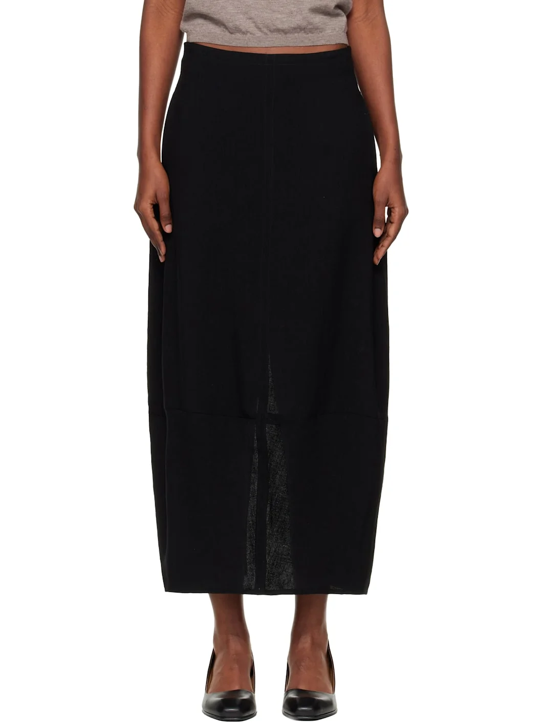 Twill midi skirt. · Two-pocket styling · Darts at front and back · Concealed zip closure at back · Central vent at back hem Supplier color: Black 100% triacetate. Made in Portugal 252608F092002