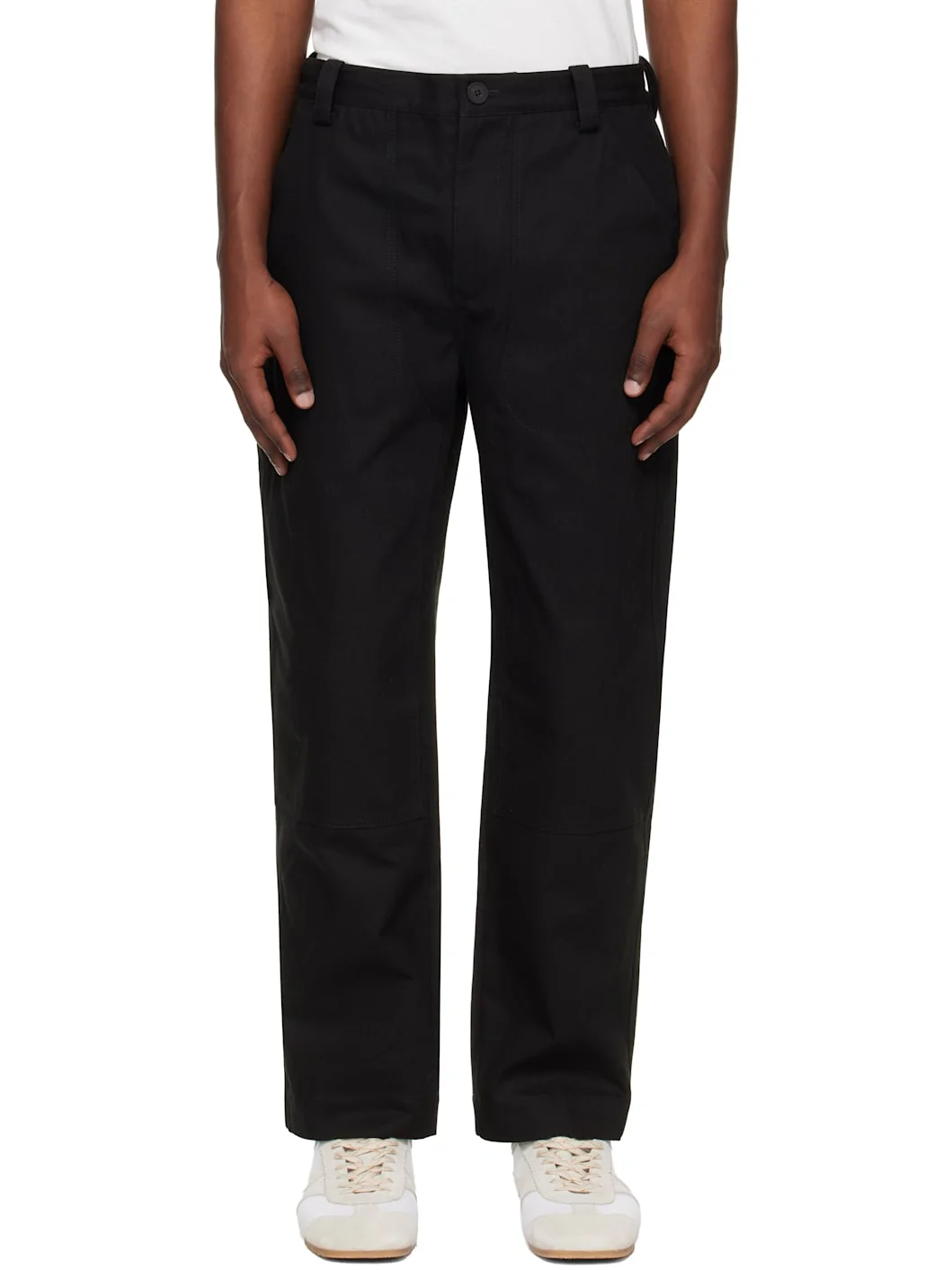 Cotton duck canvas trousers. · Slim-fit · Belt loops · Six-pocket styling · Zip fly · Patch pocket at outseam · Darts at back waistband Part of the Winter Module collection. Supplier color: Black 100% cotton. Made in Romania 261608M191009