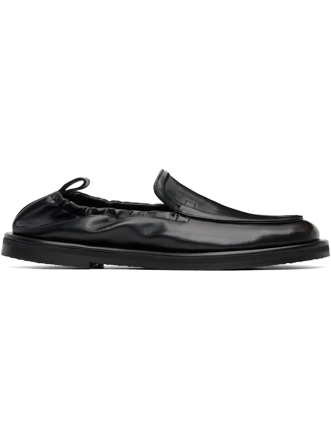 Buffed nappa leather loafers. · Moc toe · Elasticized collar · Pull-loop at heel collar · Grained leather lining · Crepe rubber sole Supplier color: Black Upper: leather. Sole: rubber. Made in Portugal 252608M231001