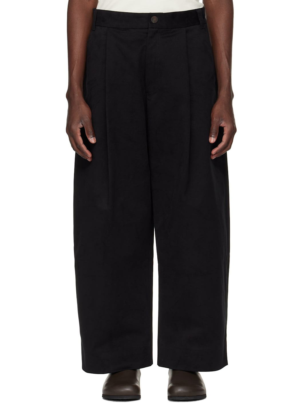 Peached cotton twill trousers. · Wide-leg · High-rise · Belt loops · Four-pocket styling · Zip fly · Pleats at front Supplier color: Black 100% cotton. Made in Portugal 252608M191004