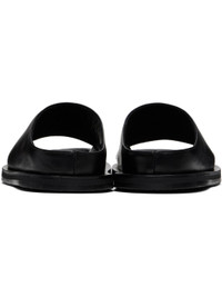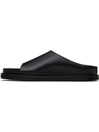 Buffed calfskin slip-on flat sandals in black. · Open toe · Logo embossed at molded footbed · Crepe rubber sole Supplier color: Black Upper: calfskin. Sole: rubber. Made in Portugal 251608F124003