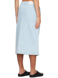 Non-stretch raw denim skirt. · High-rise · Four-pocket styling · Zip-fly · Flared hem · Leather logo patch at back waistband · Contrast stitching in orange Supplier color: Bleach wash 100% cotton. Made in United Kingdom 232608F092000