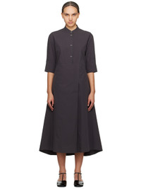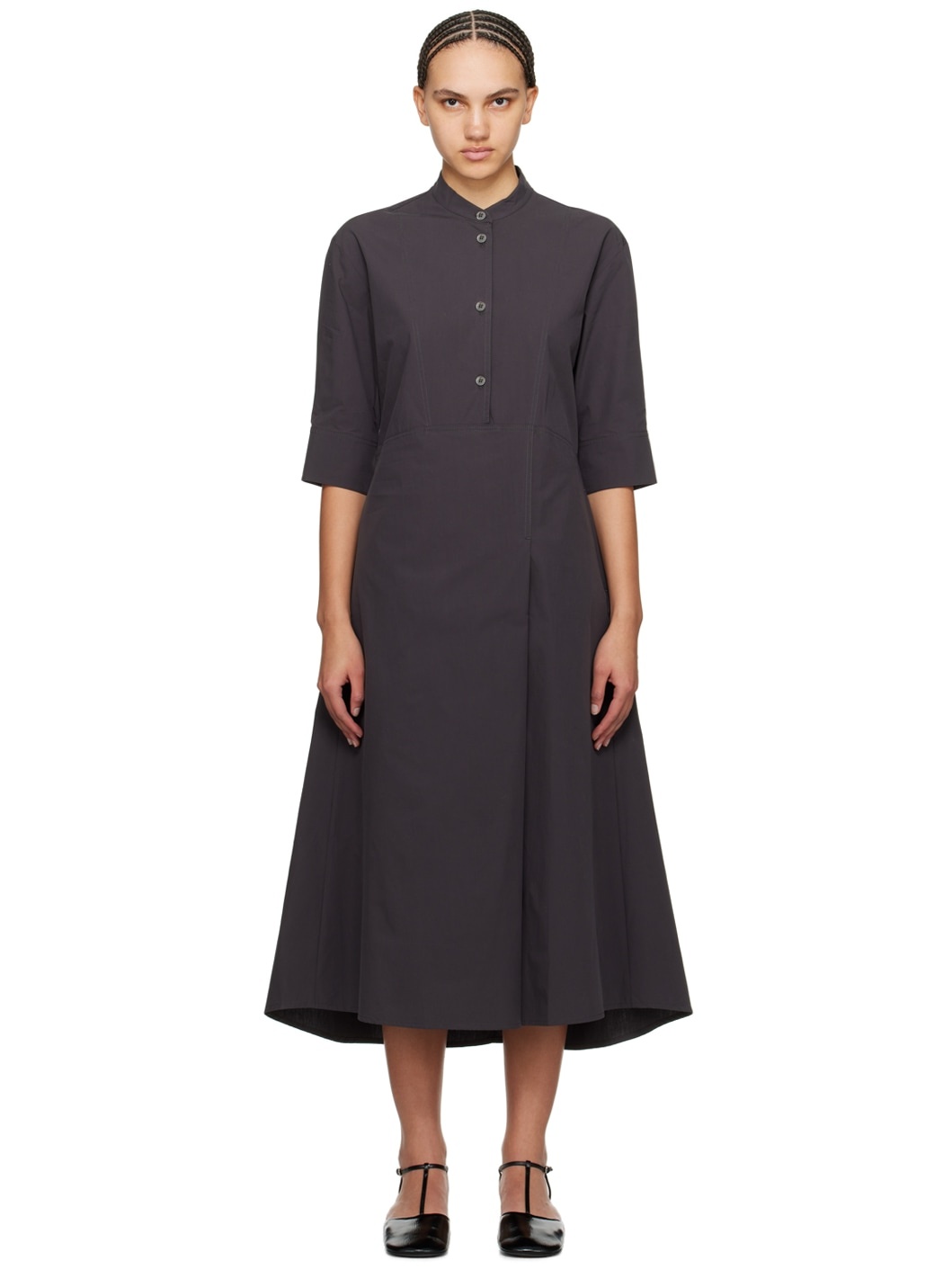Cotton poplin dress. · Band collar · Four-button placket · Concealed vent at front hem · Dropped shoulders · Single-button barrel cuffs Supplier color: Asphalt 100% cotton. Made in Portugal 241608F055003
