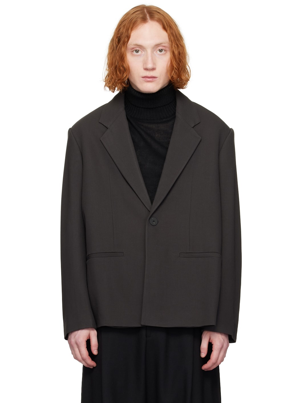 Plain-woven viscose- and wool-blend blazer. · Notched lapel · Button closure · Darts at front · Welt pockets · Padded dropped shoulders · Central vent at back hem · Welt pocket at interior · Full twill lining Supplier color: Oil Body: 64% viscose, 36% wool. Lining: 51% viscose, 49% cotton. Made in Portugal 251608M195007