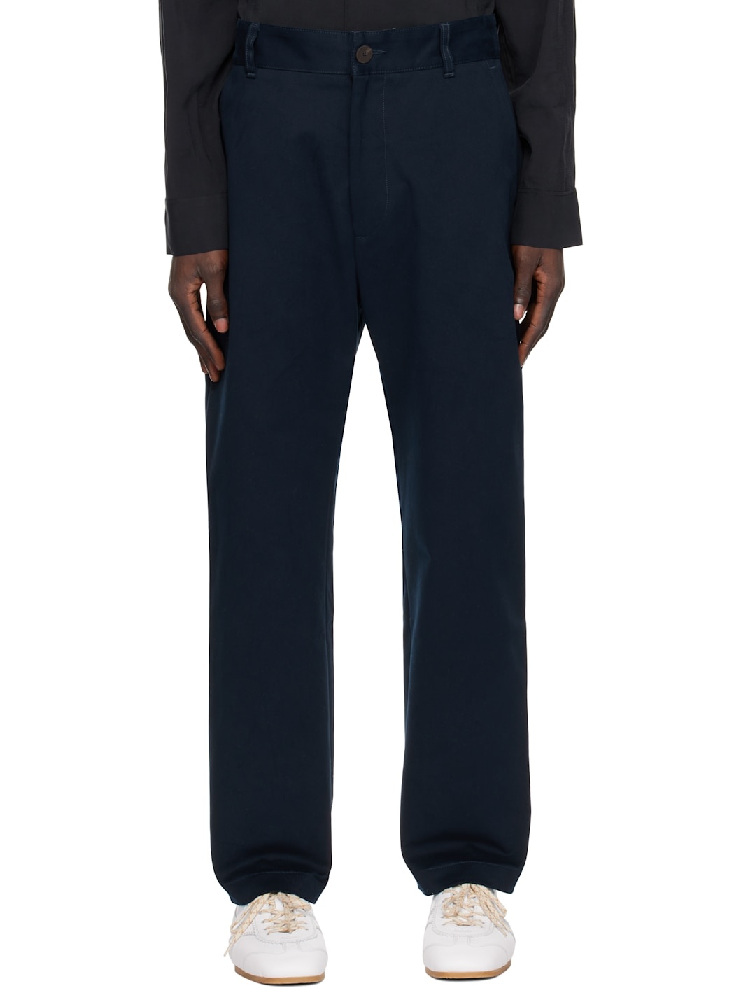 Straight-leg cotton twill trousers. · High-rise · Belt loops · Four-pocket styling · Zip-fly Supplier color: Dark navy