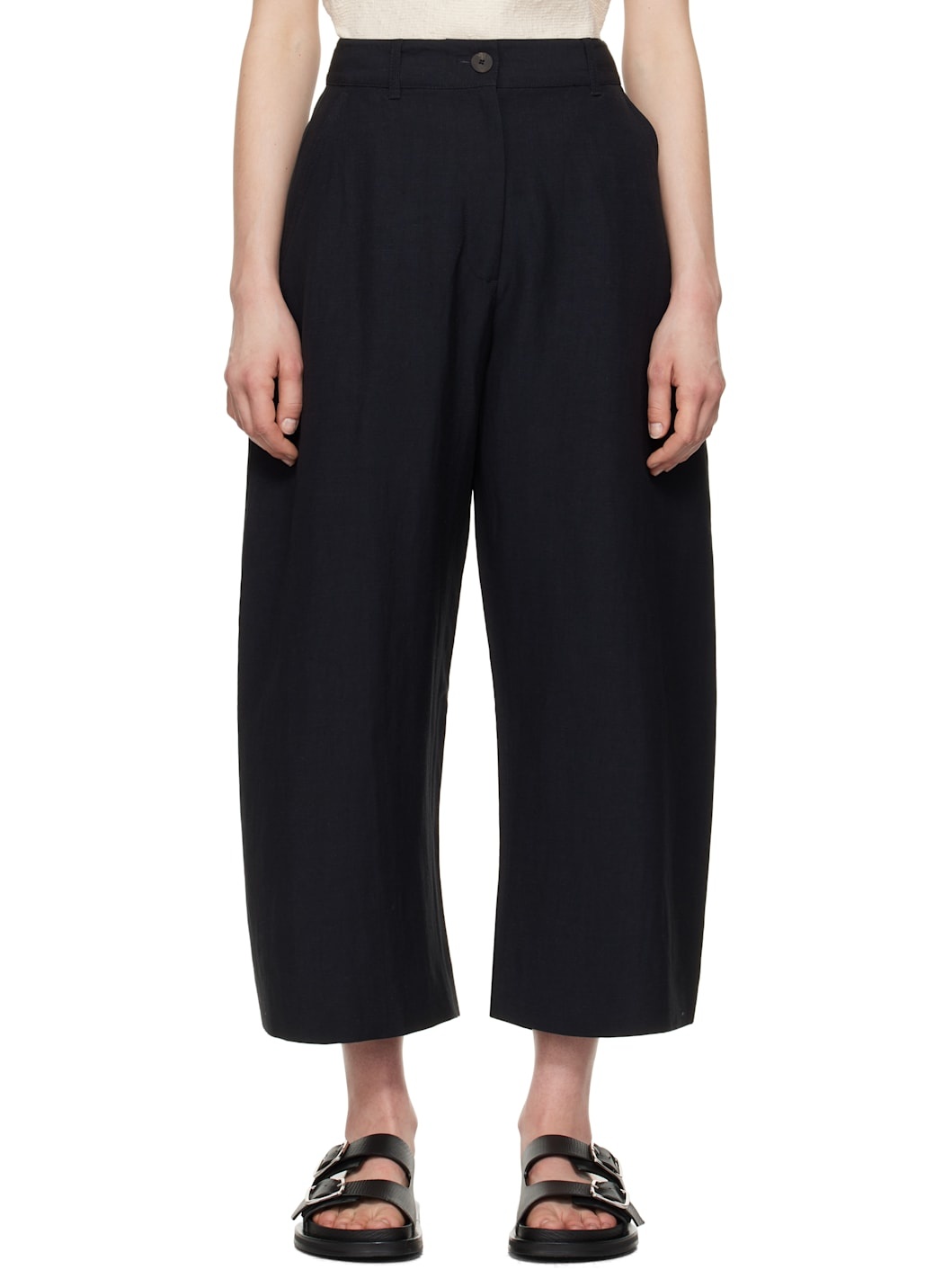 Plain-woven linen- and virgin wool-blend trousers. · Belt loops · Four-pocket styling · Zip fly · Cropped legs · Curved outseams · Darts at back waistband Supplier color: Darkest navy 65% linen, 35% virgin wool. Made in Portugal 251608F087002