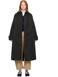 Lightweight cotton-blend gabardine trench coat. · Water-repellent · Hook-eye fastening at spread collar · Concealed button closure · Welt pockets · Raglan sleeves · Adjustable button tab at cuffs · Central vent at back hem · Patch pocket at interior · Full twill lining Supplier color: Dark navy Body: 64% cotton, 36% nylon. Lining: 51% viscose, 49% cotton. Made in Portugal 252608F059000