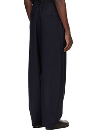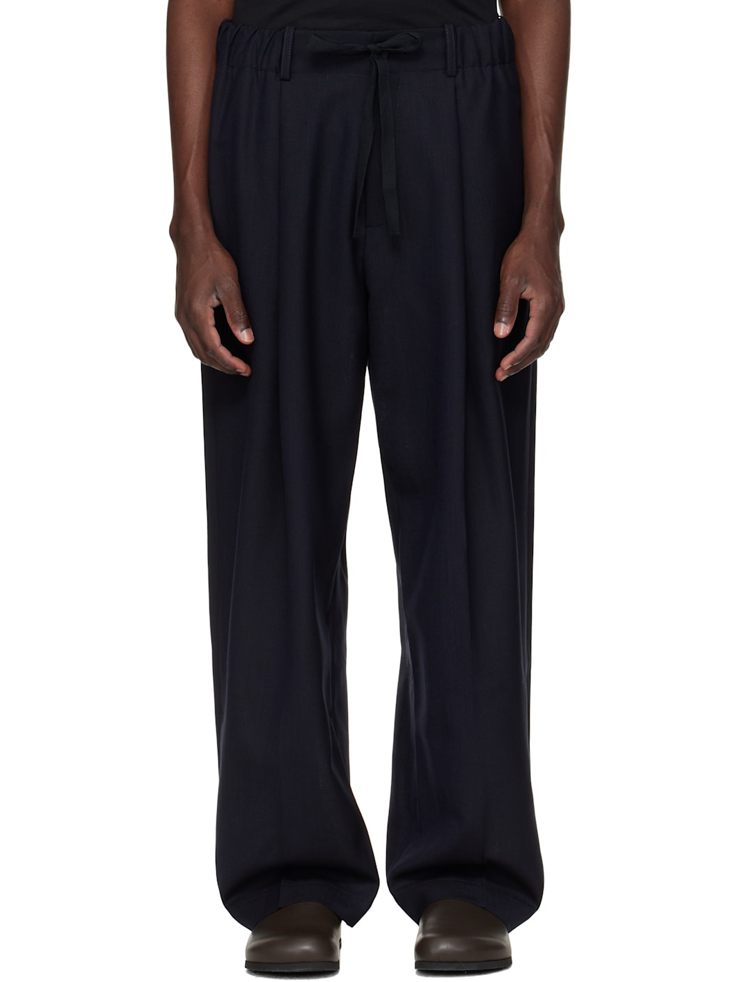 Wide-leg wool pique trousers. · Mid-rise · Belt loops · Drawstring at elasticized waistband · Two-pocket styling · Zip fly · Pleats at front Supplier color: Darkest Navy 100% wool. Made in Portugal 252608M191015