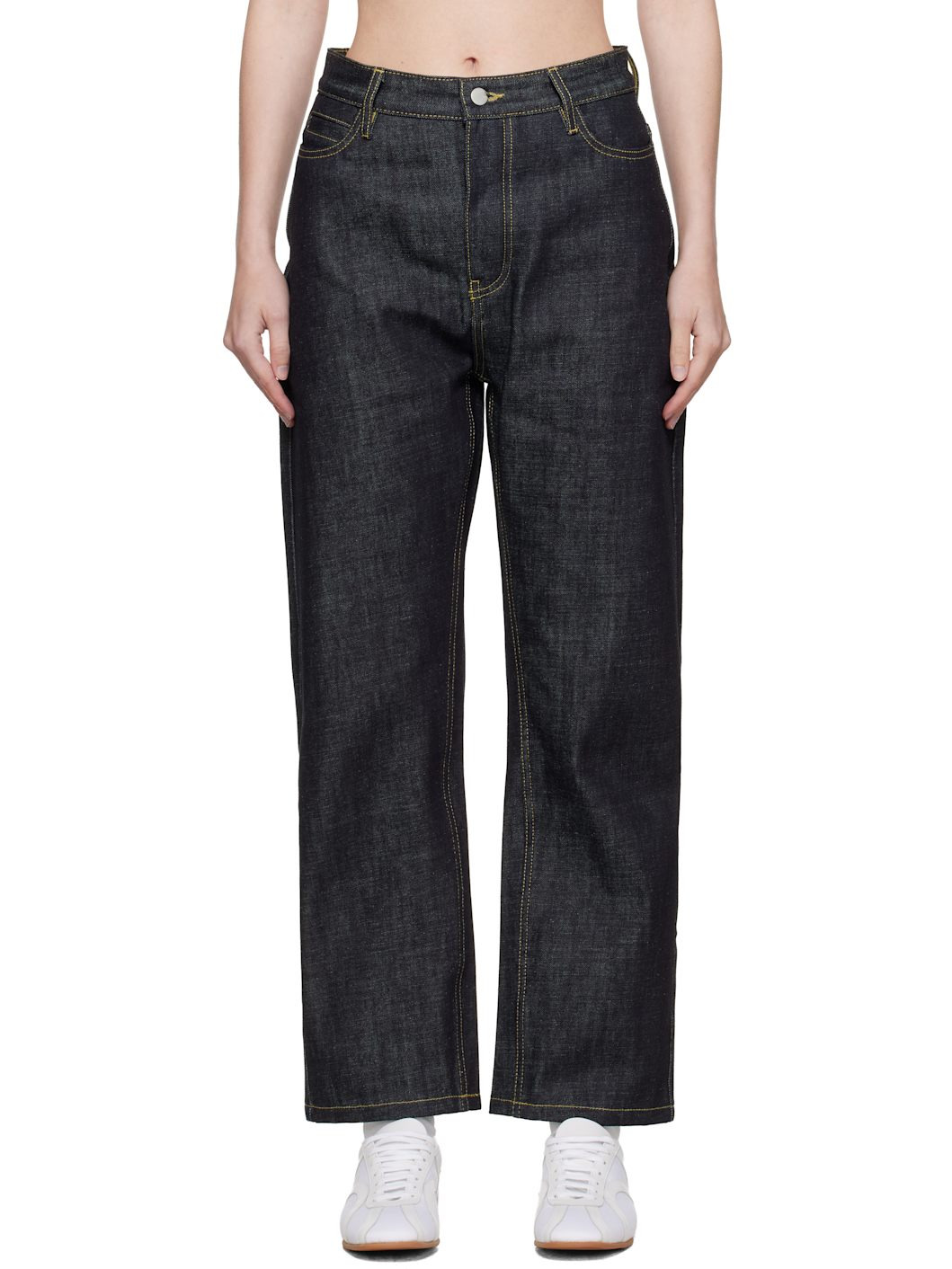14 oz non-stretch denim jeans. · High-rise · Belt loops · Five-pocket styling · Zip fly · Cropped leg · Contrast stitching in yellow Supplier color: Indigo 71% cotton, 16% recycled cotton, 13% recycled polyester. Made in Turkey 252608F069007