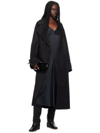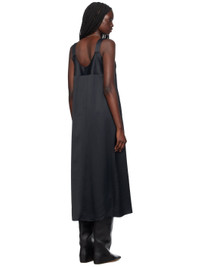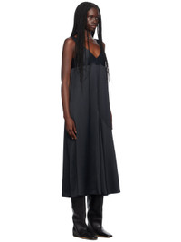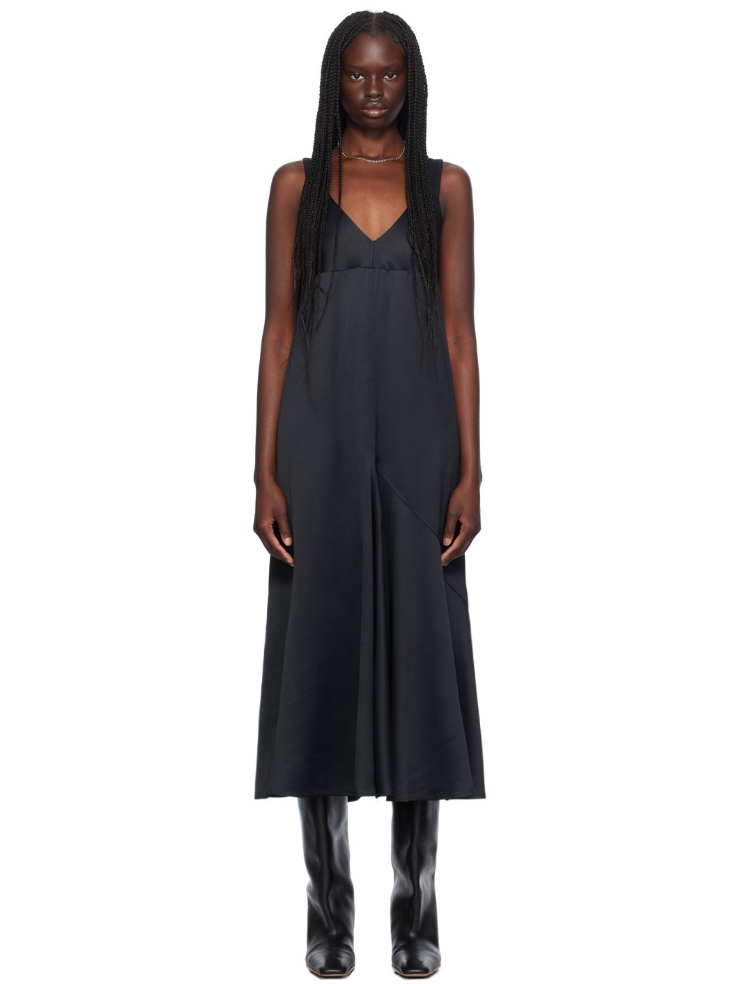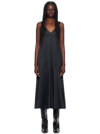 Viscose- and virgin-wool-blend satin dress. · V-neck · Asymmetric draping at flared hem · Fixed shoulder straps · Low back · Partially lined Supplier color: Black ink 83% viscose, 17% virgin wool. Made in Portugal 242608F055010