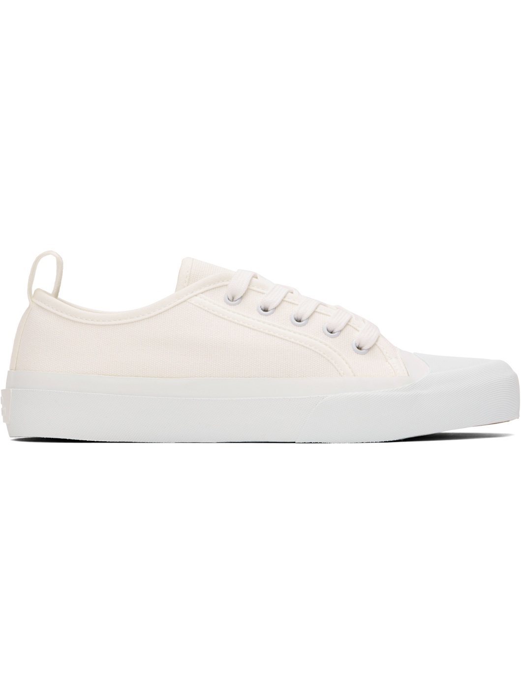 Low-top cotton canvas sneakers in off-white. · Textured rubber cap toe · Lace-up closure · Pull-loop at heel collar · Twill lining · Treaded vulcanized rubber sole Supplier color: Cream Upper: textile. Sole: rubber. Made in Romania 251608M237000