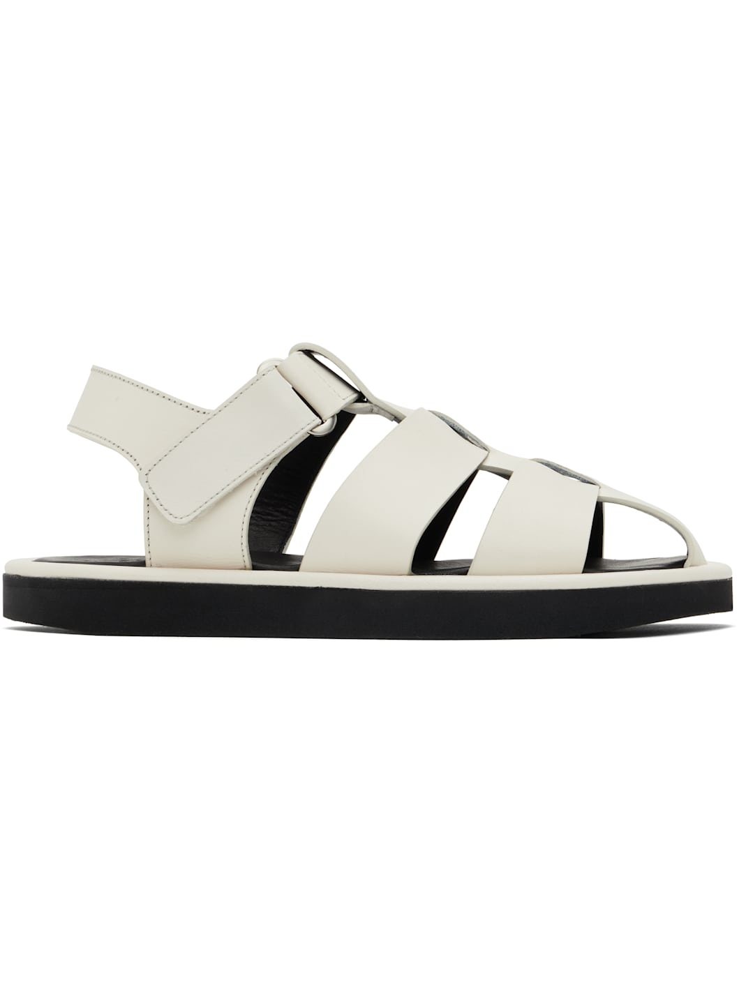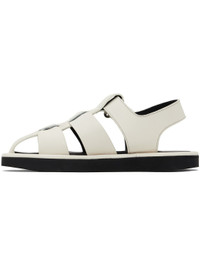 Grained calfskin sandals in off-white. · Woven straps at vamp · Velcro ankle strap · Logo embossed at padded leather footbed · Foam rubber sole Supplier color: Parchment Upper: calfskin. Sole: rubber. Made in Portugal 251608F124000