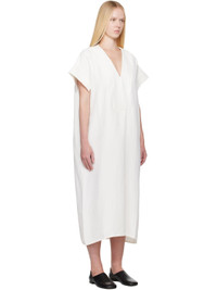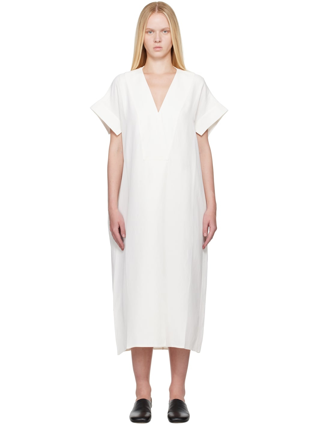 Viscose- and linen-blend twill midi dress. · Plunging V-neck · Pleat at front · Seam pockets · Vent at front hem · Cap sleeves · Central seam at back Supplier color: Parchment 73% viscose, 27% linen. Made in Portugal 251608F054006