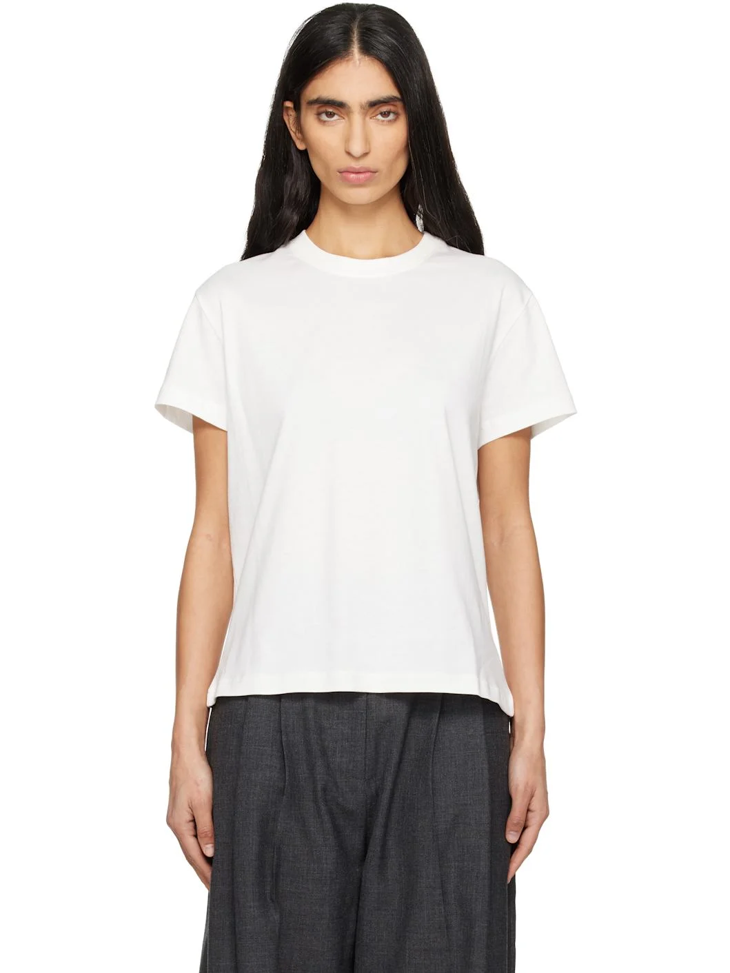 Cotton jersey T-shirt. · Rib-knit crewneck · Logo printed at back collar Supplier color: Off white 100% cotton. Made in Portugal 261608F110014