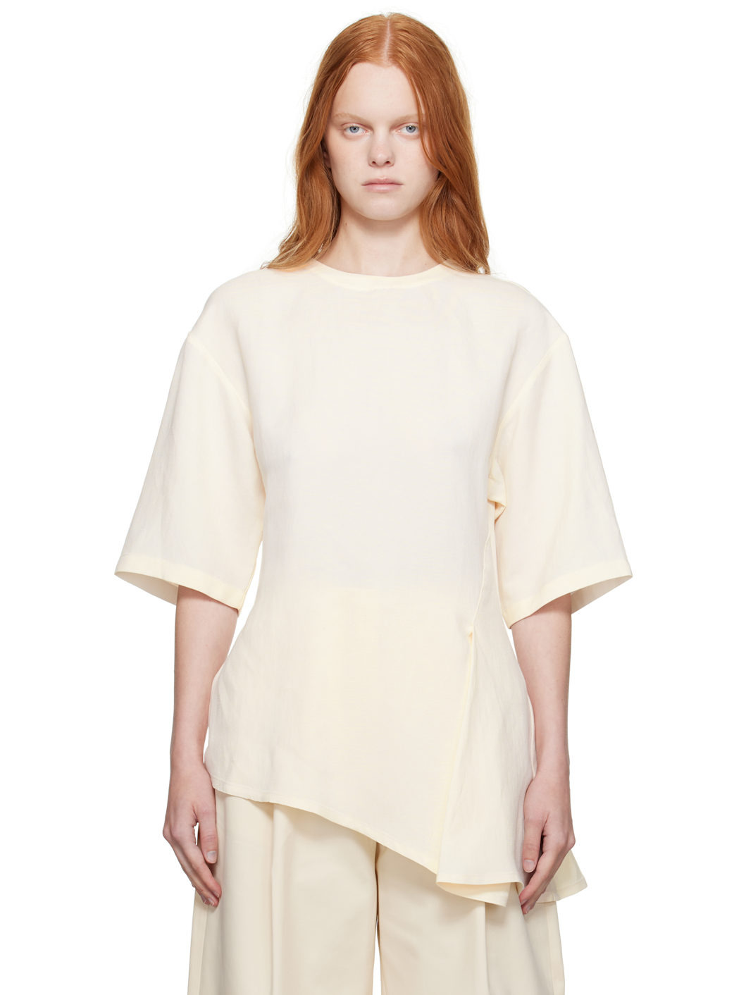 Wool canvas top. · Crewneck · Asymmetrical hem · Vent at side seam · Button fastening at back collar Supplier color: Chalk 100% wool. Made in Portugal 252608F110013