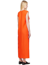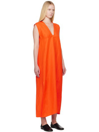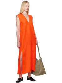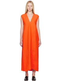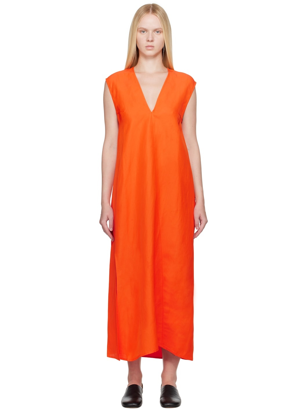 Viscose- and linen-blend twill midi dress. Twisted seams throughout. · Plunging V-neck · Darts at bust · Slit at side seam · Unlined Supplier color: Clementine 73% viscose, 27% linen. Made in Portugal 251608F054005