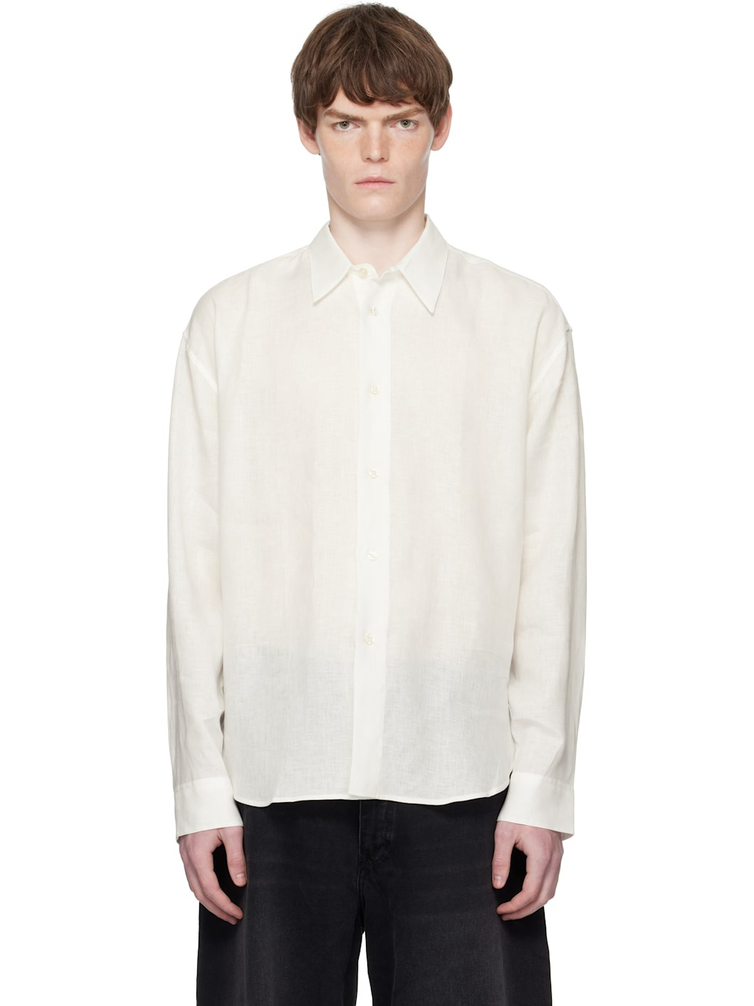 Lightweight and semi-sheer linen gauze shirt. · Oversized · Spread collar · Button closure · Shirttail hem · Dropped shoulders · Buttoned barrel cuffs · Locker loop at back yoke Supplier color: Milk 100% linen. Made in Portugal 252608M192003