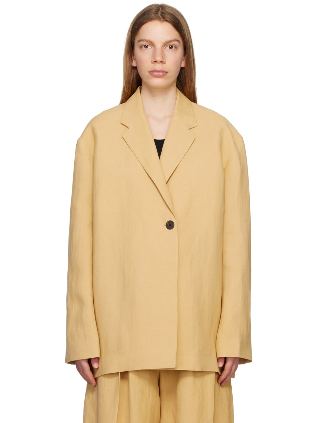 Plain-woven slub linen- and viscose-blend blazer. · Notched lapel · Single-button closure · Dropped shoulders · Central vent at back hem · Partial cupro-blend twill lining Supplier color: Lark Body: 64% linen, 36% viscose. Lining: 50% cupro, 50% cotton. Made in Portugal 231608F057003