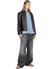 Heavyweight 14 oz non-stretch organic cotton denim jeans. · Fading, whiskering, and distressing throughout · Wide-leg · Mid-rise · Belt loops · Five-pocket styling · Zip fly · Leather logo patch at back waistband · Logo-engraved silver-tone hardware Supplier color: Black Stone 100% organic cotton. Made in Tunisia 261468M186008