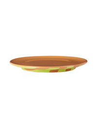 Handcrafted glazed terracotta plate. Hand-painted stripes in green. D10.2 Supplier color: Green