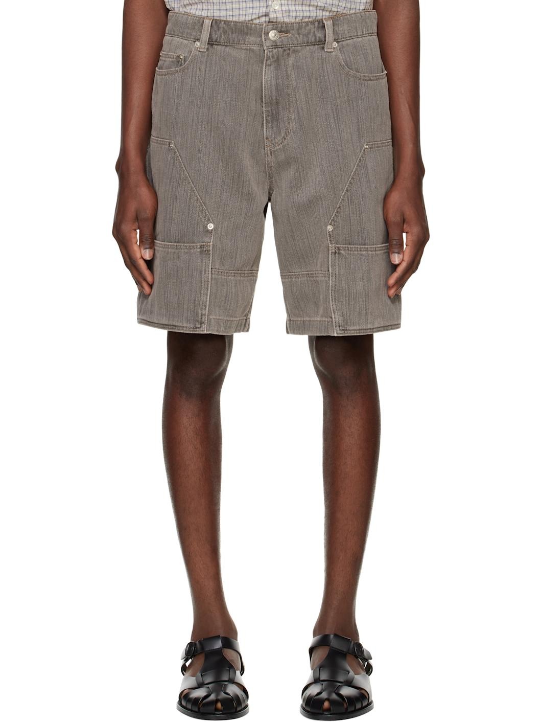 Non-stretch denim shorts. · Belt loops · Five-pocket styling · Zip fly · Patch pockets at front and back legs · Hammer-loop at back leg · Logo hardware at back belt loop · Leather logo patch at back waistband · Logo-engraved silver-tone hardware · Contrast stitching in beige Supplier color: Sepia grey Body: 100% cotton. Lining: 80% polyester, 20% cotton. Made in South Korea 251494M193010