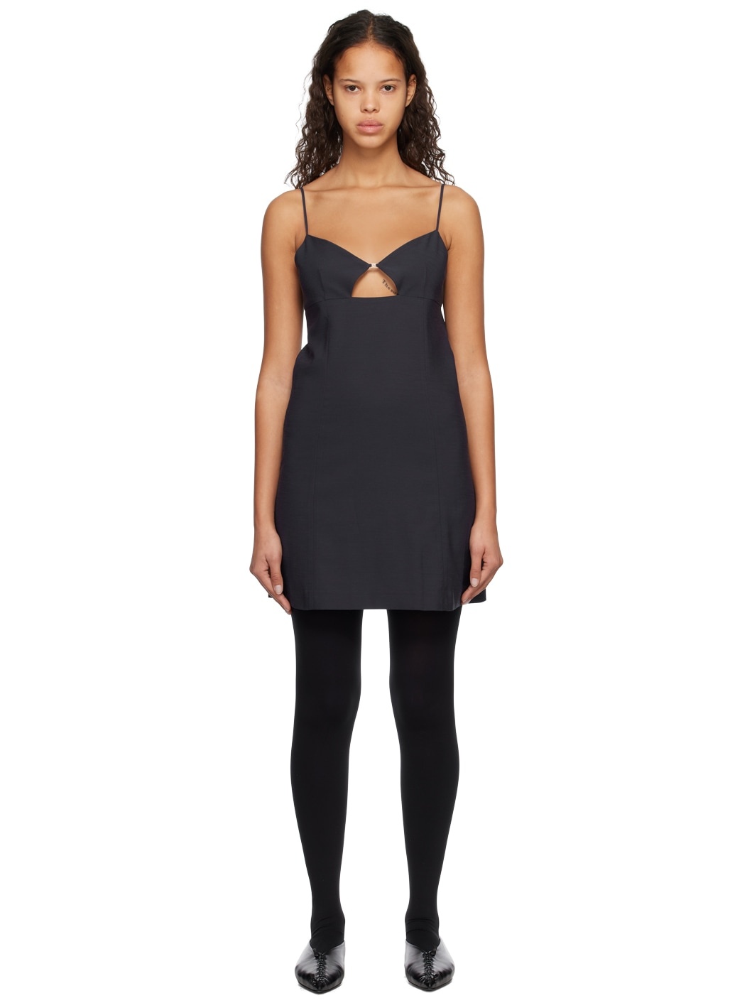 Rayon- and polyester-blend broadcloth dress. · V-neck · Logo hardware and cutout at chest · Adjustable spaghetti straps · Concealed zip closure at back · Full satin lining Supplier color: Dark navy Body: 55% rayon, 37% polyester, 8% flax. Lining: 100% polyester. Made in South Korea 231494F052000