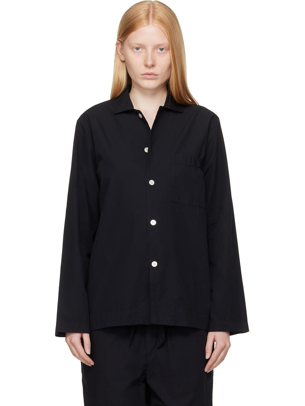 Lightweight organic cotton poplin pyjama shirt. · Certified OEKO-TEX Standard 100 · Stonewashed · Spread collar · Button closure · Patch pocket at chest · French seams at interior · Mother-of-pearl hardware Supplier color: All black 100% cotton. Made in Portugal 252482F079010