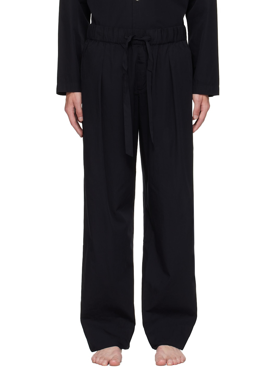GOTS-certified organic cotton poplin pyjama pants. · Drawstring at elasticized waistband · Four-pocket styling · Button fly · Grosgrain stripe trim at outseams · Logo patch at back pocket Supplier color: All black 100% organic cotton. Made in Portugal 252482M218002