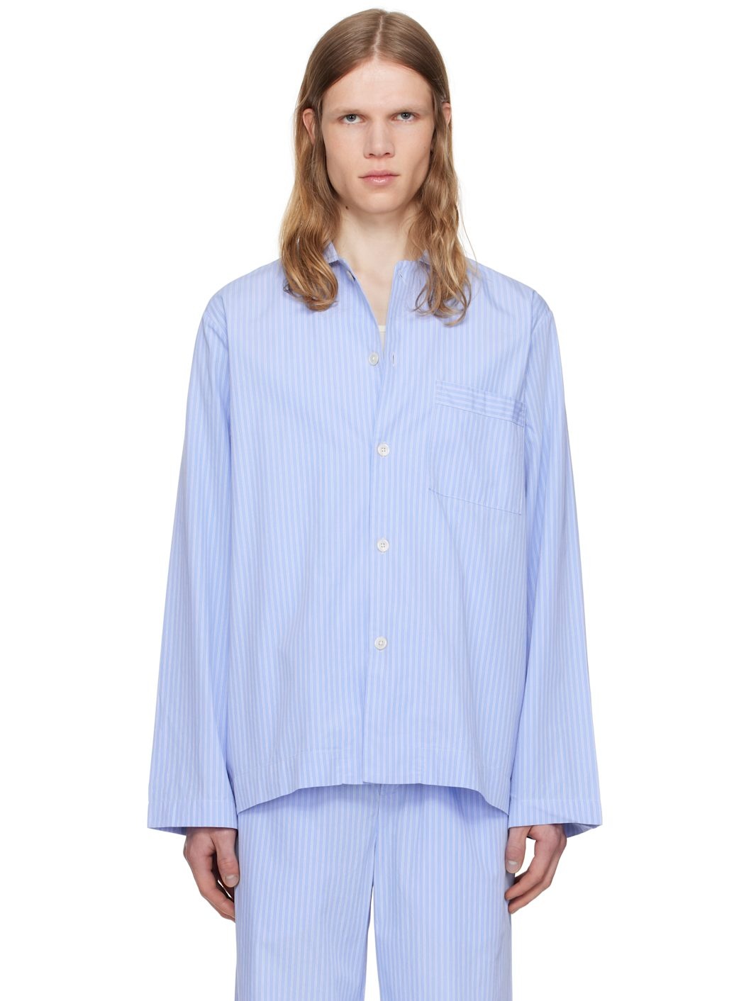 Blue Poplin Long-Sleeved Pyjama Shirt