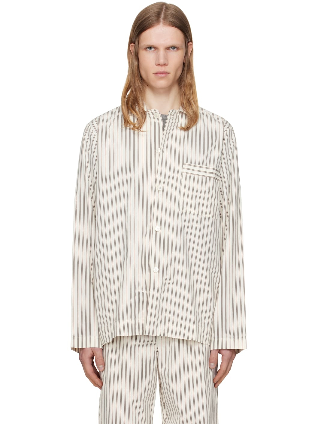 Brown & Off-White Poplin Long-Sleeved Pyjama Shirt