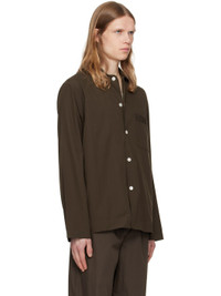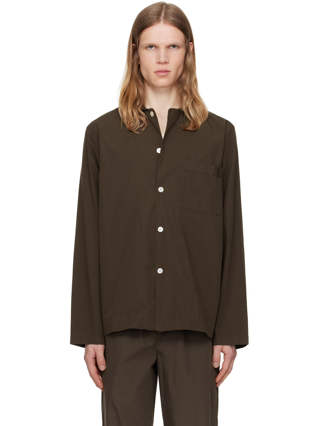 Brown Poplin Long-Sleeved Pyjama Shirt