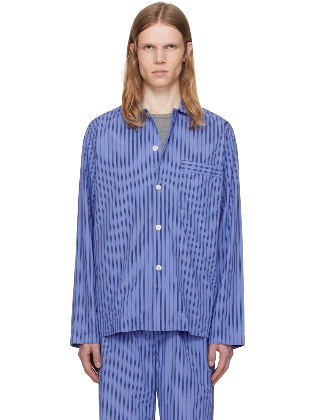 Lightweight organic cotton poplin pyjama shirt. Stripes throughout. · Certified OEKO-TEX Standard 100 · Stonewashed · Spread collar · Button closure · Patch pocket at chest · French seams at interior · Mother-of-pearl hardware Supplier color: Boro stripes 100% organic cotton. Made in Portugal 252482M218029