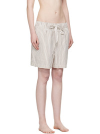 Lightweight organic cotton poplin pyjama shorts. Stripes throughout. · Certified OEKO-TEX® Standard 100 · Wide-leg · Stonewashed · Drawstring at elasticized waistband · Four-pocket styling · Button fly · Logo patch at back pocket · French seams at interior · Mother-of-pearl hardware Supplier color: Hopper stripes 100% cotton. Made in Portugal 252482F079015