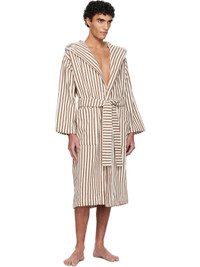 Off-White & Brown Terry Hooded Bathrobe