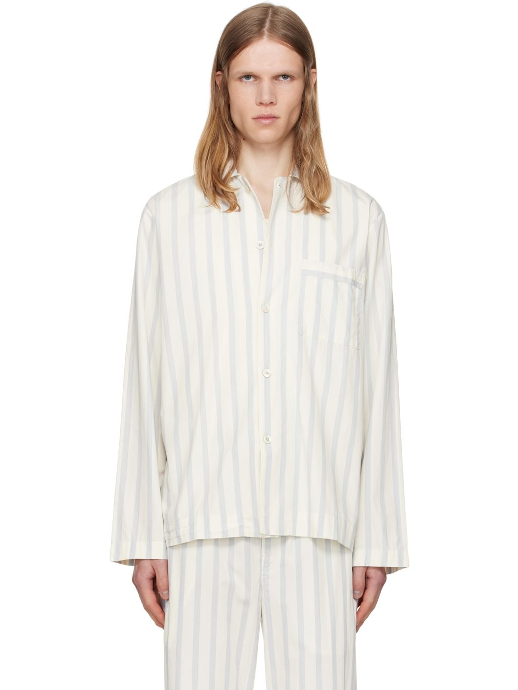 Lightweight organic cotton poplin pyjama shirt. Stripes throughout. · Certified OEKO-TEX Standard 100 · Stonewashed · Spread collar · Button closure · Patch pocket at chest · French seams at interior · Mother-of-pearl hardware Supplier color: Needle stripes 100% organic cotton. Made in Portugal 252482M218027