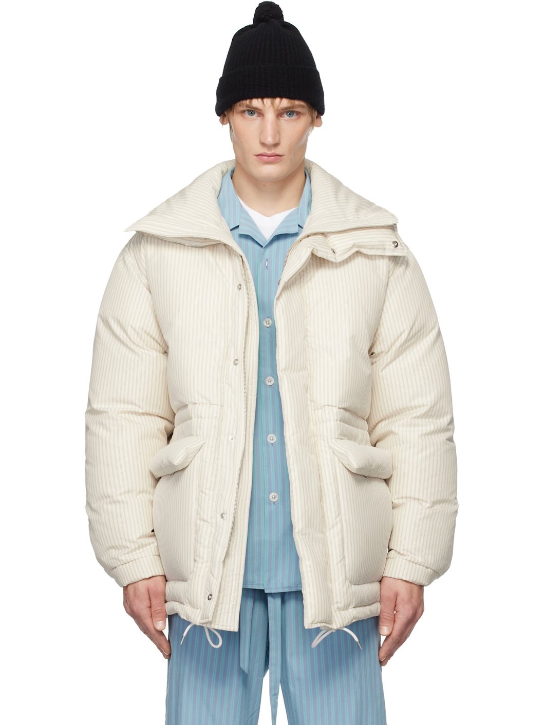 SSENSE Exclusive White AURALEE Edition Stripe Down Jacket