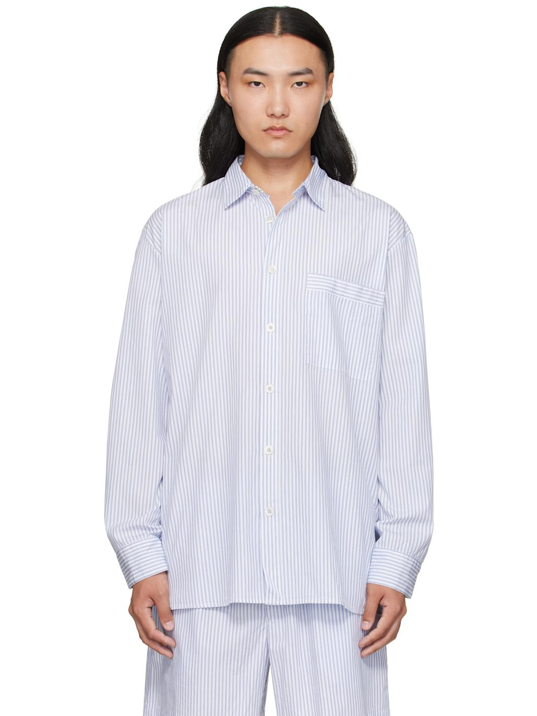 White & Blue Poplin Long-Sleeved Pyjama Shirt